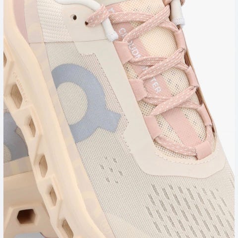 On Running Cloudmonster løpesko i størrelse EU 40. Modellen er en nøytral løpesko med karakteristisk mellomsåle med store Cloud-elementer for demping. Overdelen er i pustende tekstilmesh i lys hvit/grå farge med snøring foran. Skoene egner seg til løping og annen trening på hardt underlag.
