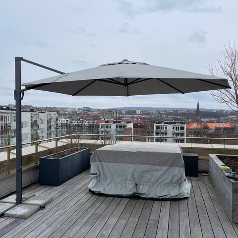 Parasoll (rektangulær) m/parasollfot i granitt fra Balcony Living
