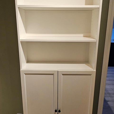 Helt like, en med hyller og en med skuffer