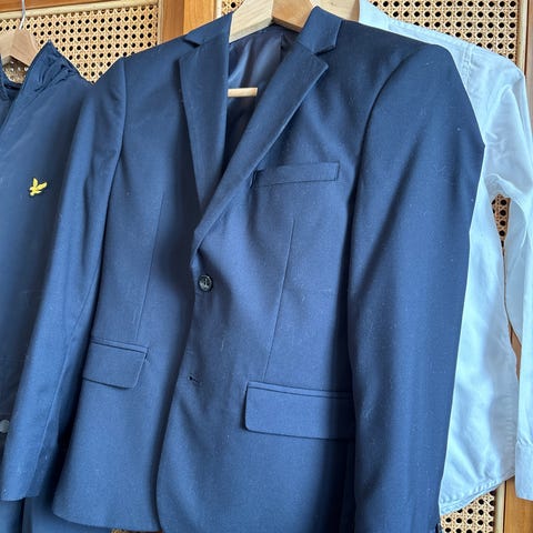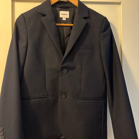 Dress for gutt i størrelse 152. Fra Cubus. Sett består av svart dressjakke og bukse.Jakken har enkel knepping foran, slag og lommer. Mangler nederste knapp i jakke. Buksen er rett modell med press. Fargen er ensfarget svart, egnet til bruk ved formelle anledninger som konfirmasjon, selskap eller andre høytidelige sammenhenger.