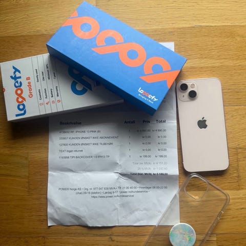 En nydelig rosa farge på modellen iphone 13, kjøpt 17 oktober, 2023. Pent brukt, ingen skader og har aldri vært knust. Batteri kapasiteten er mellom 75-80%. Mobilen har 128 GB. Send melding om flere bilder er ønsket. Pris kan diskuteres