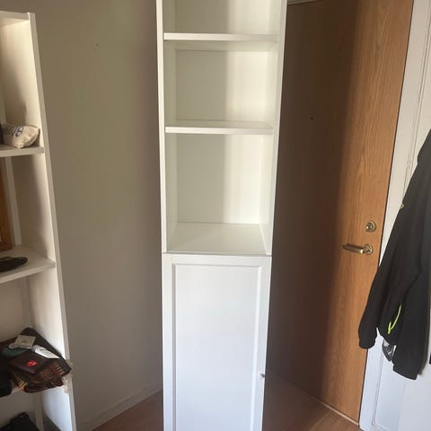 En hylle har merker og en annen har en minimal vannskade i et hjørne og et lite merke. Når det står ting i hyllene vil ikke det synes.