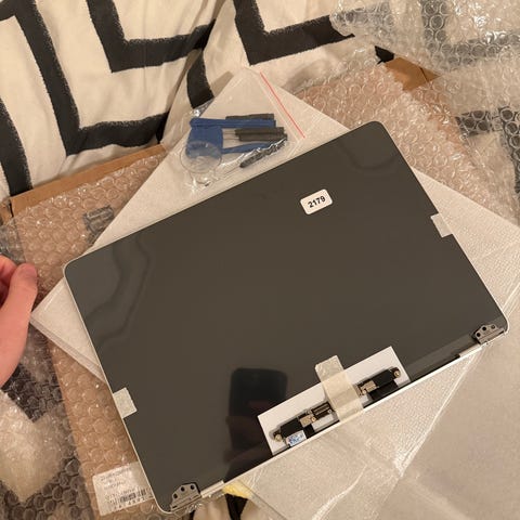Inkluderer LCD-panel, toppdeksel, hengsler, webkamera og alle nødvendige kabler.