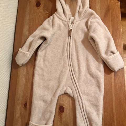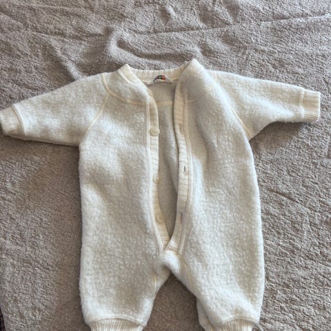 Huttelihut heldress i ullfleece i off-white. Myk og god, hette med ører 🧸 Str 50. Superpraktisk dress med flapper på bena og hender så man ikke trenger votter på de mildere dager ☀️ vasket med lav sentrifugering så ullfleecen har holdt seg.