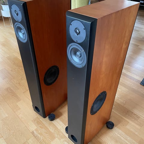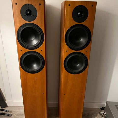 Spendor D9 high‑end gulvhøyttalere i strøken stand. Kjøpt brukt hos Mala Audio i 2021. Ingen bruksmerker, røykfritt hjem. Svært musikalsk og naturlig lyd. Nypris tilsvarende modell (D9.2) hos Mala i dag: 129.000 kr.