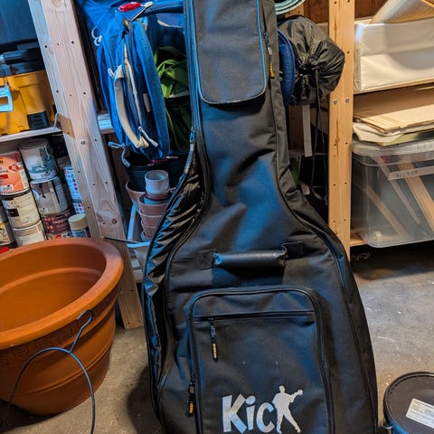 Liten frontlomme passer til pedaler, strenger, strømforsyninger og andre småting