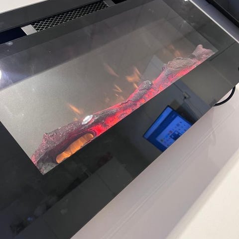 Selger en stilren elektrisk peis/varmeovn med dekorativ flammeeffekt. Gir både varme og koselig stemning – perfekt til stue, soverom eller hytte.