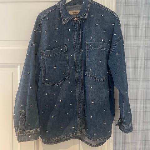 ONLY denimskjorte for dame i størrelse L. Skjorten er i lys blå denim med hvitt blomster-/stjernemønster. Klassisk krage og lange ermer. Lukkes med trykknapper foran. To brystlommer med klaff og trykknapp. Materiale i denim (bomullsblanding). Passer som hverdagsplagg eller som lett ytterlag over topp eller t-skjorte.