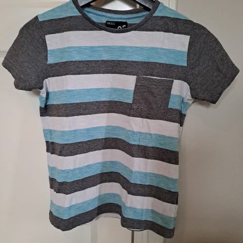 Selger en pent og lite brukt Devold ulltrøye i merinoull i størrelse 16 år. Trøyen har kort erm og er tofarget grønn.