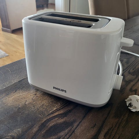 Selges pga overgang til ny. Fungerer fremdeles fint og får en real vask før overlevering. Den har smeltet litt på toppen fordi jeg testet å riste et brød på toppen samtidig som jeg hadde to i. Har ingenting å si på bruken.