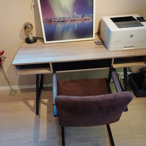 Dette er et fint praktisk bord som har mange bruksområder. Bordet har en skuff og åpning for ledning. Har kjøpt et annet i annen farge. Må hentes.