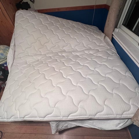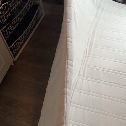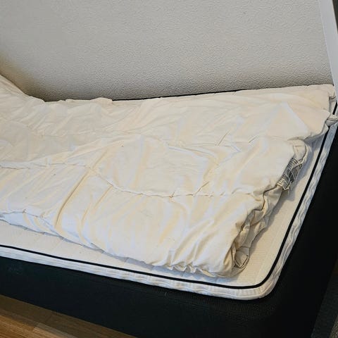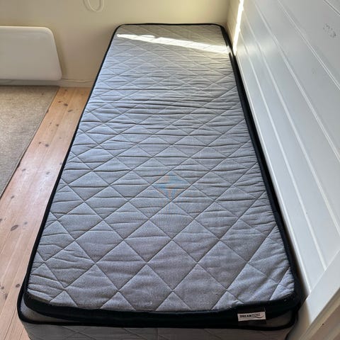 Enkeltseng med overmadrass i størrelse 75cm bredde. Det følger med madrass beskyttelse og ny overmadrass