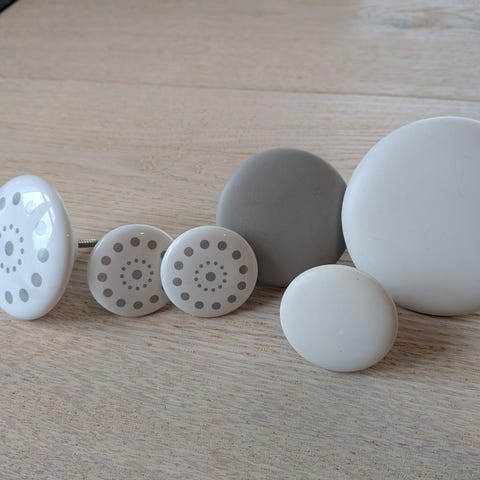 11 hvite porselenknotter/håndtak