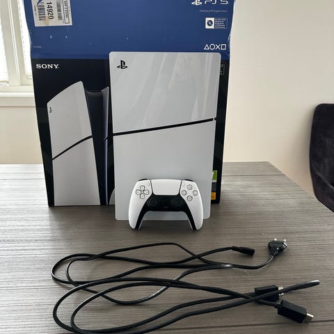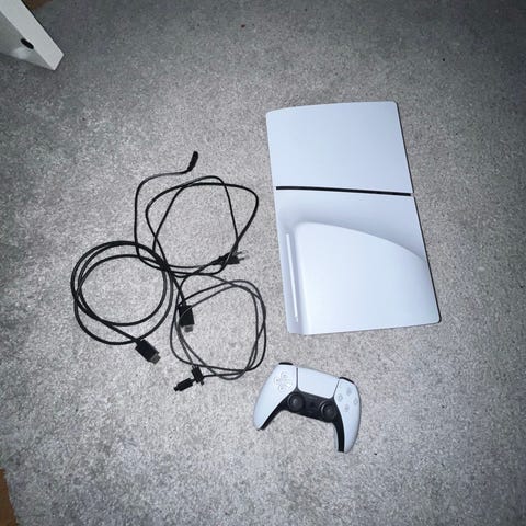 Selger relativt ny Sony PlayStation 5 Slim Digital Edition i spillkonsoll i hvit.
