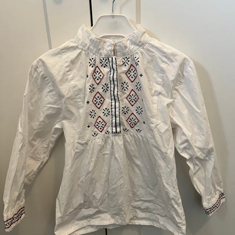 POMPdeLUX bluse til jente i størrelse 116. Blusen er hvit og laget av myk bomull. Den har rysjedetaljer i hals og liv, samt knappelukking. Passer til hverdagsbruk eller mer pyntede anledninger for barn i tilsvarende størrelse.