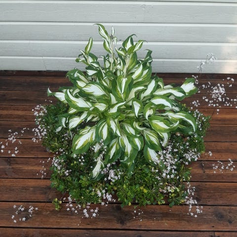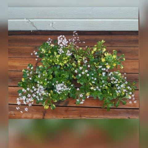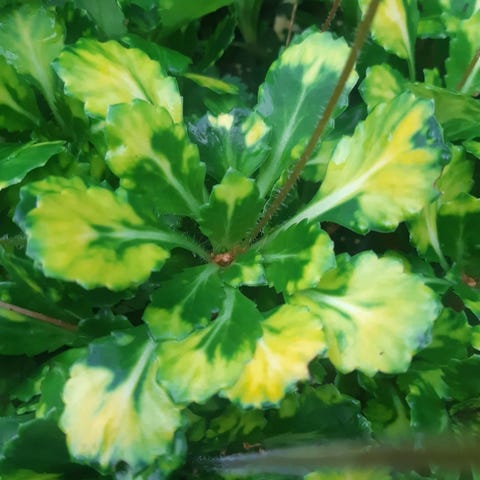 Stauder. Saxifraga urbium Variegata. Blomster. Planter.