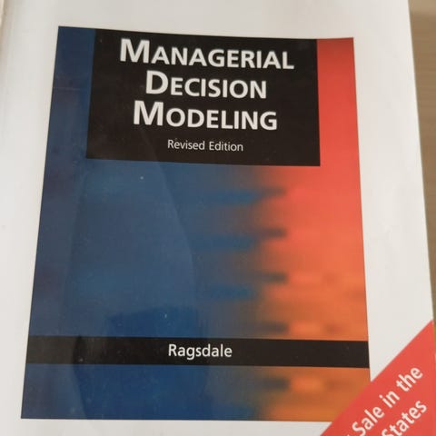 South-Western Managerial Decision Modeling lærebok i økonomi og administrasjon. Boken dekker beslutningsmodeller og kvantitative metoder for ledelse, blant annet lineær programmering, modellformulering og analyse av beslutningsproblemer. Utgaven på bildene er International Edition. Egner seg som pensumbok eller referanseverk innen økonomi, administrasjon og ledelsesfag.