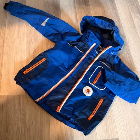 Reflex jakke i str 110. Kjempefin jakke som kan brukes både høst, vinter og vår. Noe slitasje nederst bak, men ellers ingen skader eller hull.