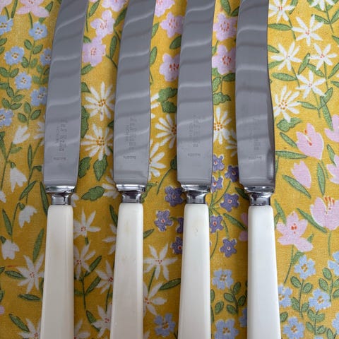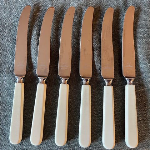 Påskrift på knivblad: SES HELLE, Norge - rustfri. Fine i både skaft og knivblad. 23 cm lange.