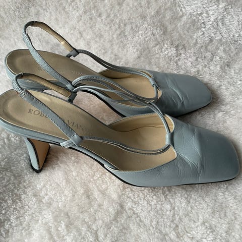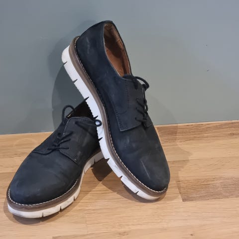 Pent og lite brukte sko str 37, selges da de er for små. Fin gråblå farge og med flettemønster på overdel. Hvit såle under, kork mellom. For fine til å stå i skapet, mye bruk igjen.