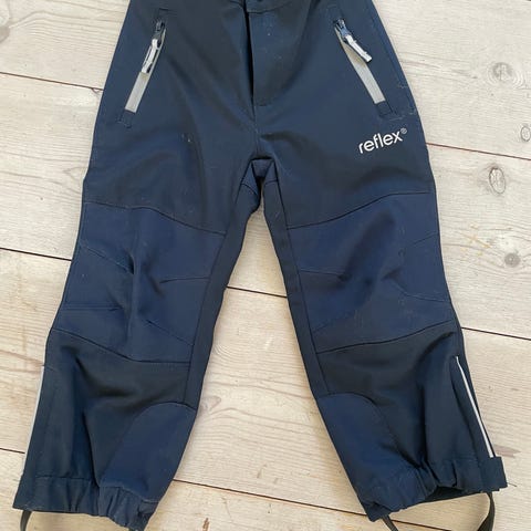 Praktisk overtrekksbukse/ skallbukse fra Reflex. Buksen holder barnet tørt og beskytter mot vind og regn. Mener den har høy vannsøyle (husker ikke nøyaktig).