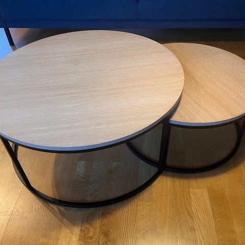 De to andre bordene på bildet er hjørnebord D 55- H45 pris 200 og D 40- H40 pris 100.