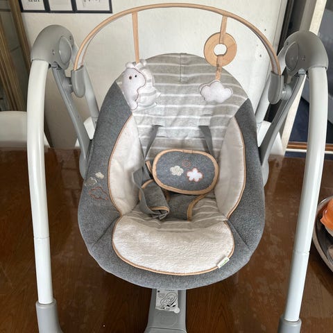 Pent og lite brukt vippestol fra Beemoo som er par år gammel. Har behagelige lyder/musikk med forskjellige nivåer for bevegelse av vugging. Perfekt for en liten baby til å sove og slappe av. Kontroll på sidene og ledning følges med.