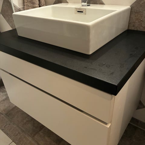 Vileroy & boch servant. Usikre på møbelets fabrikant. Det er en lett stripe mellom benketopp og skuff, det fungerte da jeg demonterte den, men har stått ubrukt en stund.