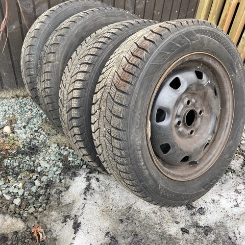 Hei nye dekk selges, brukt en sesong. De har god mønster, felger følger med.