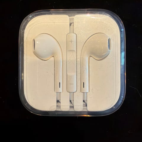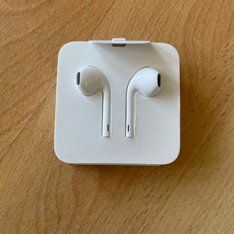 Apple EarPods headset med Lightning-tilkobling i hvit farge.