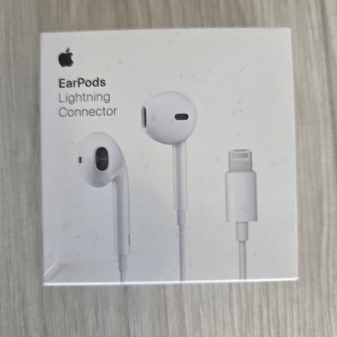 Kablet ørepropp-headset med innebygd Lightning-kontakt, tilpasset Apple-enheter med Lightning-port. Standard øreproppdesign med kabel og integrert fjernkontroll og mikrofon på ledningen (ifølge produktserien). Passer til bruk med kompatible iPhone- og iPad-modeller som har Lightning-tilkobling for lyd og tilbehør.