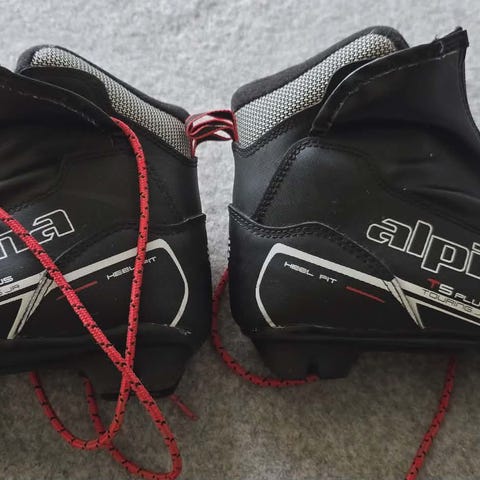 Alpina T5 JR langrennsstøvler i størrelse 32. Farge svart med røde detaljer. Støvlene er beregnet for barn/junior og passer til klassisk langrenn. Overdelen er isolert og polstret for varme og komfort, med snøring og glidelås/lukking som beskytter mot snø. Sålen er tilpasset vanlig turbinding for langrenn (NNN-system, JR-modell). Egnet til turbruk og skigåing for yngre løpere.