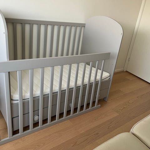 Sprinkelseng og madrass selges. Denne har stått på et gjesterom hos besteforeldre og er støtt pent brukt!