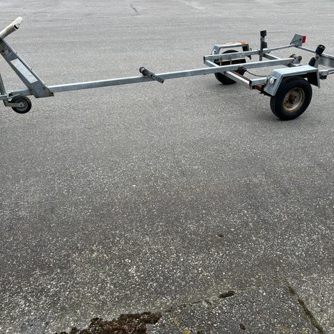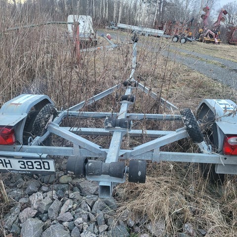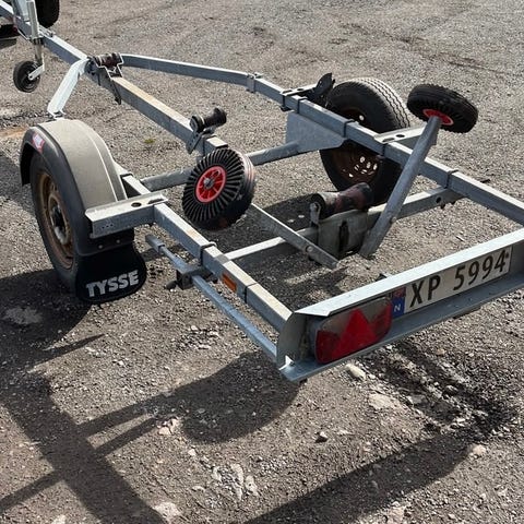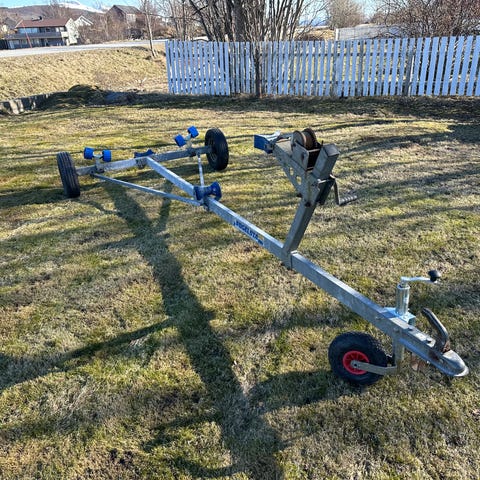 Meget bra båthenger med mye nytt! Passer båter opp til 14-16 fot. Total lengde på ramme er 475 cm. Ble litt for stor til mitt bruk. Nye hjullager, alle ruller og støtter, reim til vinsj, nesehjul og fine felger med bra dekk. Åpen for bud/forslag.