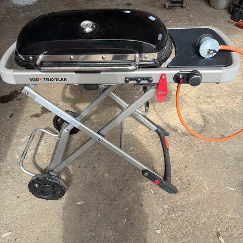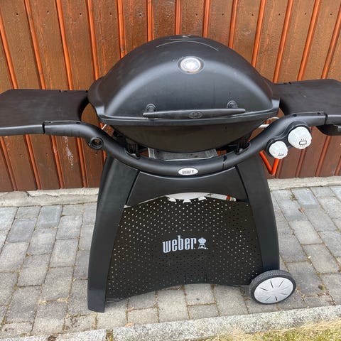 Under grillen er det skap med plass til gassflaske og tilkoblet gasslange. Grillen står på hjul for enklere flytting. 2013 modell. Rengjort påsken 2026.