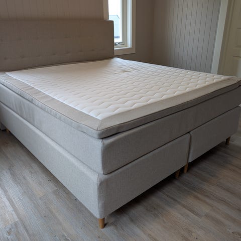Det du trenger for å sette sammen en fin kontinentalseng. Madrassene har ligget inne i trekk til kontinentalseng, og har alltid hatt overmadrass og madrassbeskytter over.