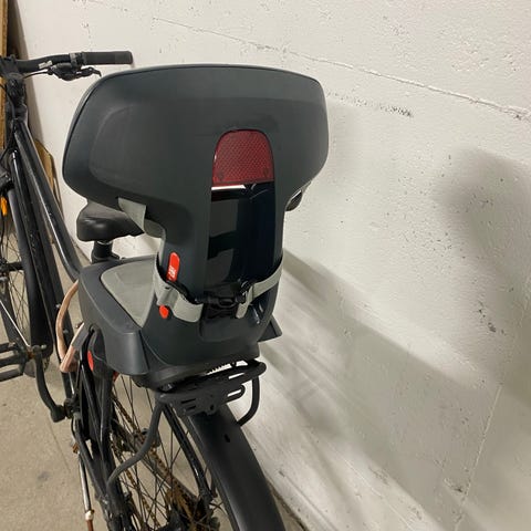 Godt brukt sykkelsete til barn. Det følger med sete, feste til bagasjebrett, fotstøtter og hjulbeskytter. Sist nevnte mangler noen strips og har vært tilpasset vår sykkel. Jeg har ikke funnet nøkkel til setet enda, men det er i all hovedsak for å låse det fast slik at ingen kan ta det.