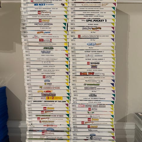 Nintendo Wii spillpakke med fire spilltitler: Monster Lab, Iron Man 2, Spectrobes Origins og Spore Hero.