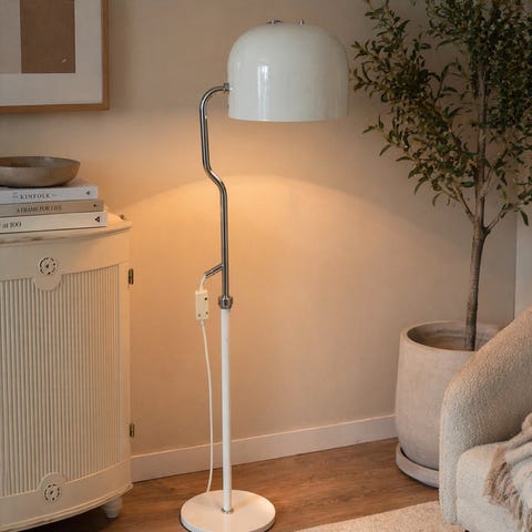 Pent brukt gulvlampe selges pga plassmangel. Mangler litt lakk i skjøten på lampefoten, se bilde nr 3. Ellers uten skader.
