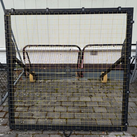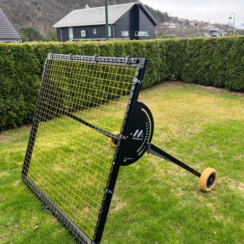 Munin Sports fotball rebounder med justerbar vinkel og hjul for enkel flytting. Rammen er i metall med netting som gir retur på pasninger og skudd. Vinkeljusteringen gjøres via gradert skive på siden av rammen, slik at man kan variere sprett og høyde på ballreturen. Hjulene gjør det mulig å trille rebounderen mellom ulike treningsområder. Egnet til fotballtrening for pasning, mottak, volley og skuddøvelser på gress eller annet underlag der rammen kan stå stødig.