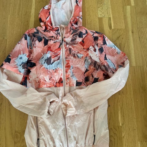 Johaug jakke for dame i størrelse S. Jakken er flerfarget med mønster i front og rygg, og ensfargede paneler i sidene og på ermene. Materialet er 100 % polyester, ifølge vaskelappen. Jakken har hel glidelås foran og høy krage. Egnet som lett ytterjakke eller mellomlag til hverdagsbruk og aktivitet. Vaskes i maskin på kaldt program etter anvisning på plagget.