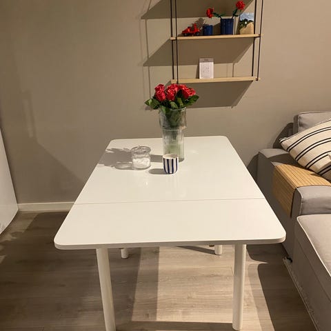 Stolene følger i utgangspunktet ikke med. Da blir prisen i så fall høyere. Bordet selges for 1000 kr eller bud. Vi har demontert bordplaten fra foten for lagring. Det er enkelt å sette det sammen igjen, men bord og sokkel er til informasjon relativt tungt. Vi har demontert og flyttet det ved hjelp av to voksne. Det gikk fint.