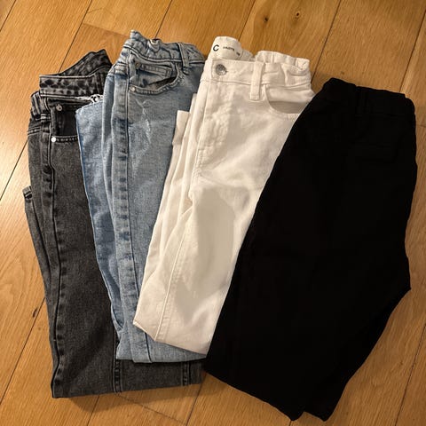 Tre jeans til jente, selges samlet kr 100,-.
