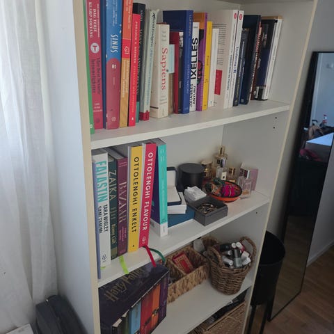 Gis bort en god bokhylle som har vært godt brukt, men som fortsatt har mange år igjen i seg. Perfekt til oppbevaring av bøker, dekor eller andre ting i hjemmet.