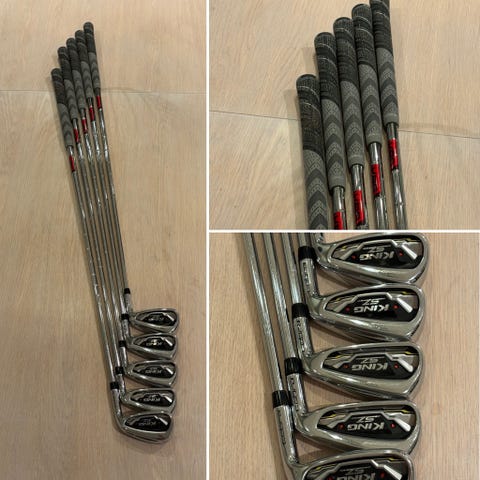 Selger mitt Taylormade m4 jernsett. Disse har svert lite bruksmerker utenom pitcheren som det er forklart mer om på bildet.