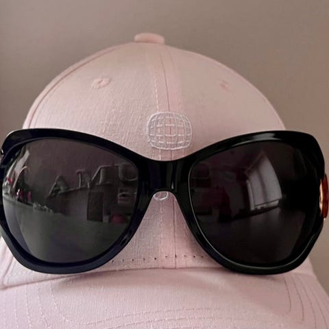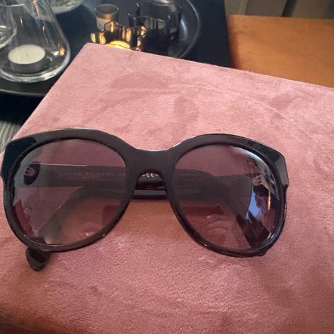 Marc Jacobs solbriller for dame i gråsvart lett gjennomsiktig innfatning. Diskré Marc Jacobs-logo på stengene. Ingen riper i glassene eller merker ellers. Selges fordi jeg har litt for mange solbrillepar. Nypris 1800.