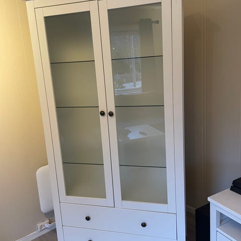 Pent brukt vitrineskap fra IKEA selges, kjøpt nytt for et par år siden. Ingen bruksmerker. Kostet i overkant av 6000kr nytt.