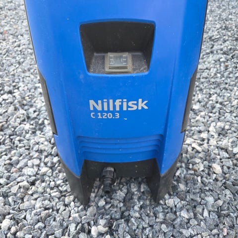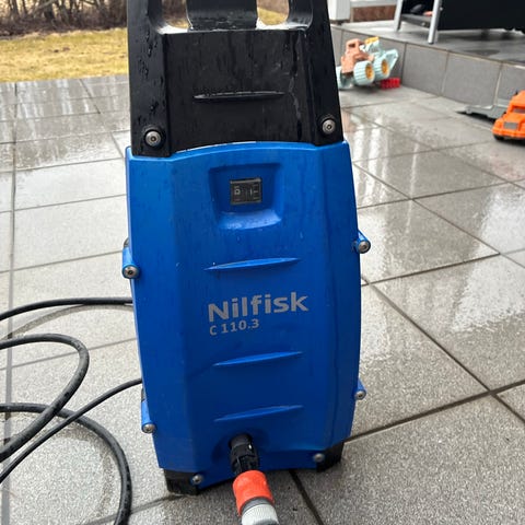 Nilfisk C 100.7 høytrykkspyler i blå farge. Kompakt modell egnet for rengjøring av for eksempel terrasse, bil, sykkel og hagemøbler.