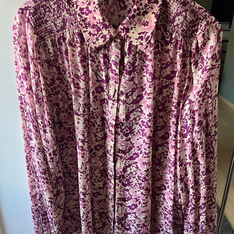 Zara bluse i str S . Rosa paisley-mønster, glatt stoff og litt innsvinget passform. V-utrigning og oppbrettbare ermer. Knapt brukt, fremstår ny.