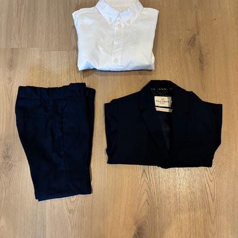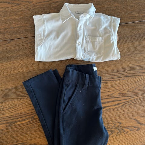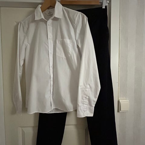 H&M dressbukse og skjorte for gutt i størrelse 140. Den er pent brukt og det er ingen misfarging, flekker, løse knapper, e.l.,